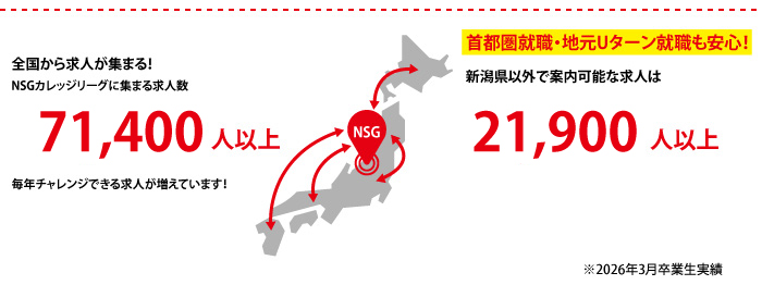 NSGカレッジリーグ独自の求人検索システムを導入しています。ハローワークに提出された求人と、学校に直接届いた求人の両方から、いつでも自分に合った求人の検索が可能です。